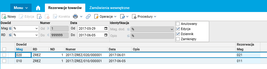2.       Blokuje nadawanie rezerwacji na towar na potrzeby magazynu Y ponad przyznaną na dowodzie ilość aż do momentu zamknięcia dowodu ZREZ.