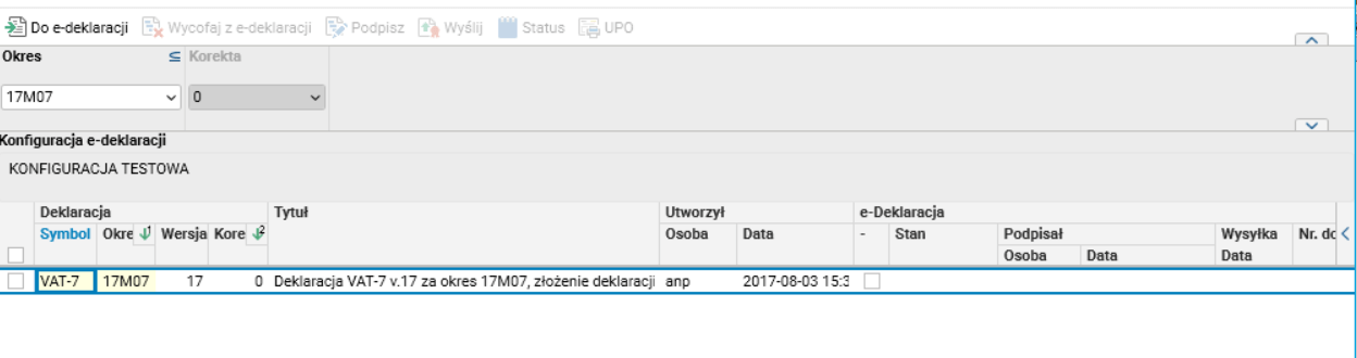 Przygotowano nowy mechanizm generowania deklaracji VAT-7. Wygenerowana deklaracja dostępna jest w słowniku podobnie jak deklaracja VAT-UE. Tak przygotowaną deklarację można podejrzeć, zmodyfikować, można dokonać jej walidacji i przesłać ją do słownika e-Deklaracje.