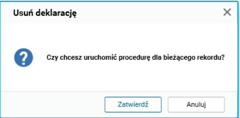 · Usuń – usuwa deklarację, możliwość użycia skrótu klawiszowe (Alt+U),