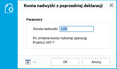 · Z poprzedniej – jeśli w poprzedniej deklaracji była nadwyżka, to kwota ta zostaje automatycznie przeniesiona do poz. 42, tutaj można zmienić podaną kwotę. Nadwyżka zostaje automatycznie przeniesiona do pozycji 42 deklaracji. Po zmianie należy ponownie przeliczyć dane.