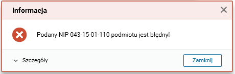 Rys. Komunikat, który pojawia się, jeśli NIP sprawdzanego podmiotu jest błędny