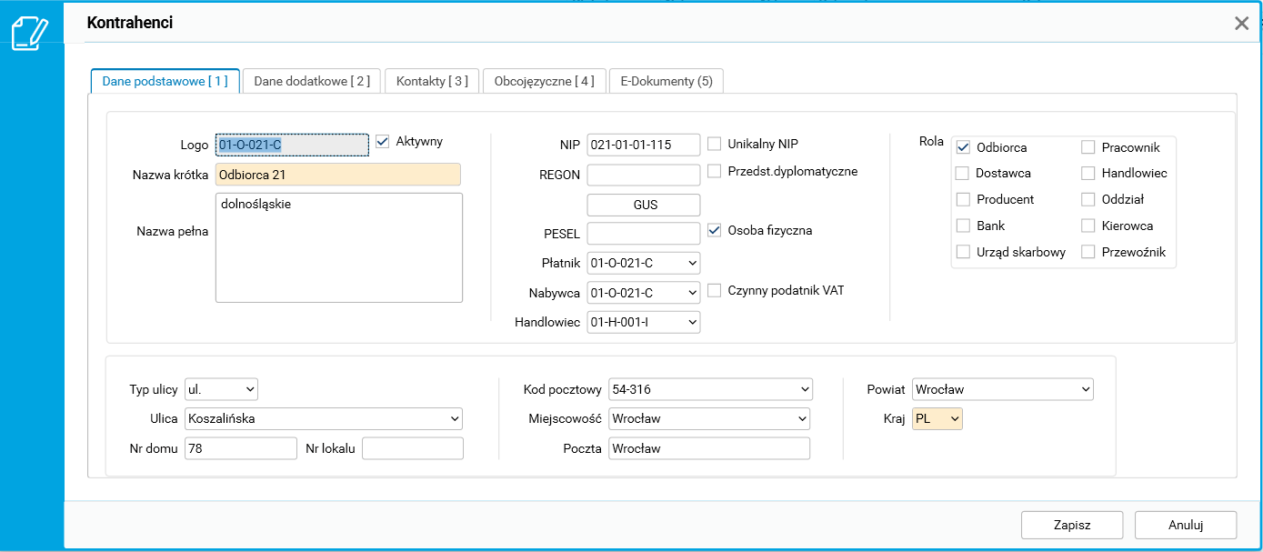 Ci sami kontrahenci występują w innej firmie w ramach tej samej instalacji jako logo firmy. Zaznaczenie ich jako osób fizycznych wynika z konieczności wykazywania w deklaracji VAT-7 znacznika osoba fizyczna i innych danych (data urodzenia, PESEL).