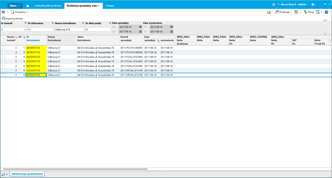 Rys. JPK – Ewidencja sprzedaży oraz nabyć towarów i usług – wykazany numer NIP kontrahenta