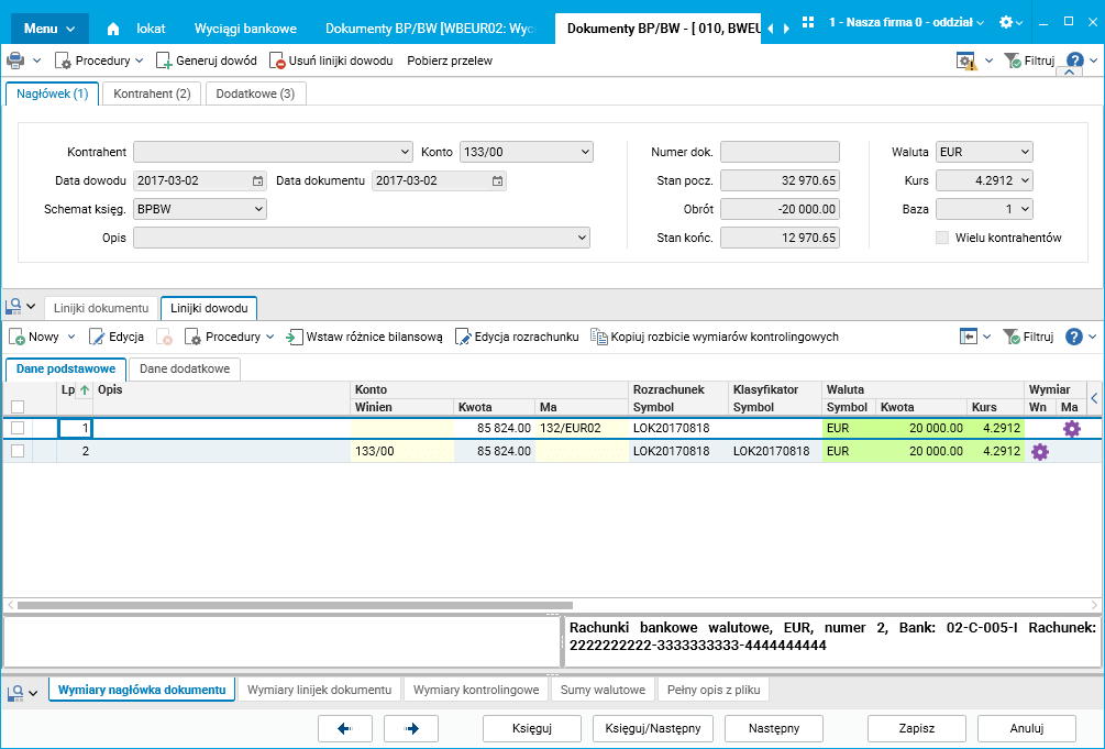 Schemat księgowania BPBWLokata sprawia, że poszczególne zapisy zostaną zaksięgowanie po kursie historycznym.
