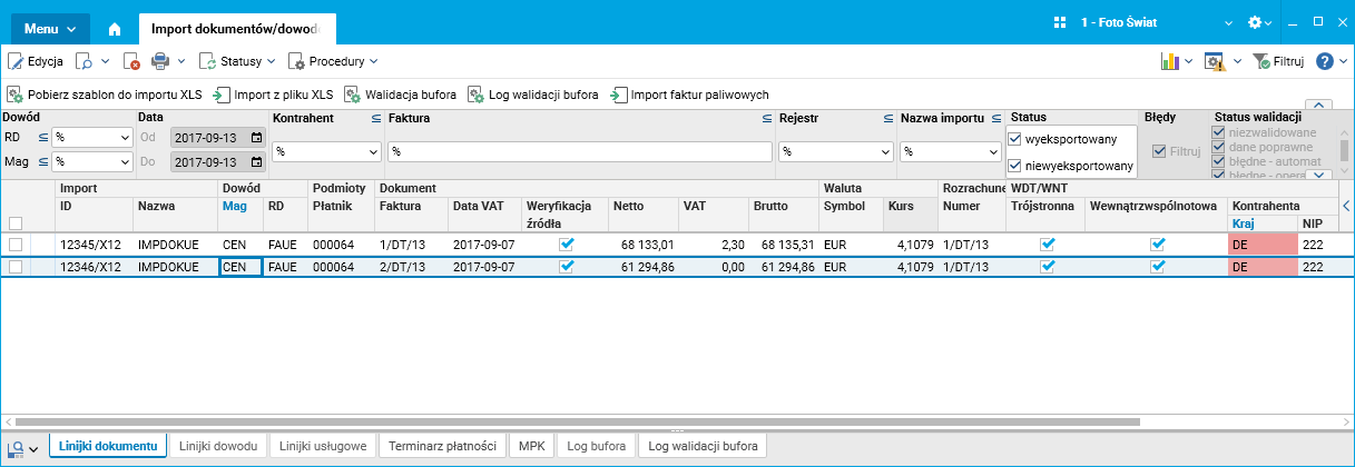Import dokumentów/dowodów. Zmiana kodu kraju w numerze NIP-UE w zaimportowanych dokumentach