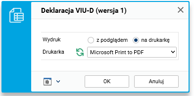 Rys. Parametry wydruku deklaracji VIU-D