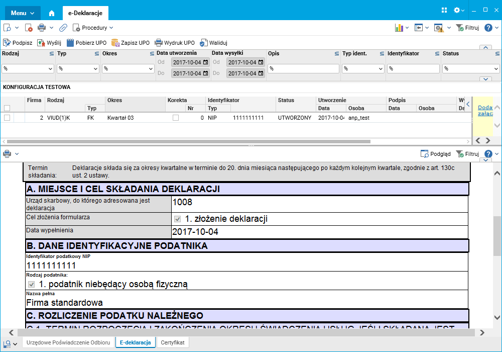 Do słownika e-Deklaracje dodano podgląd deklaracji oraz możliwość wydruku deklaracji VIU-D.