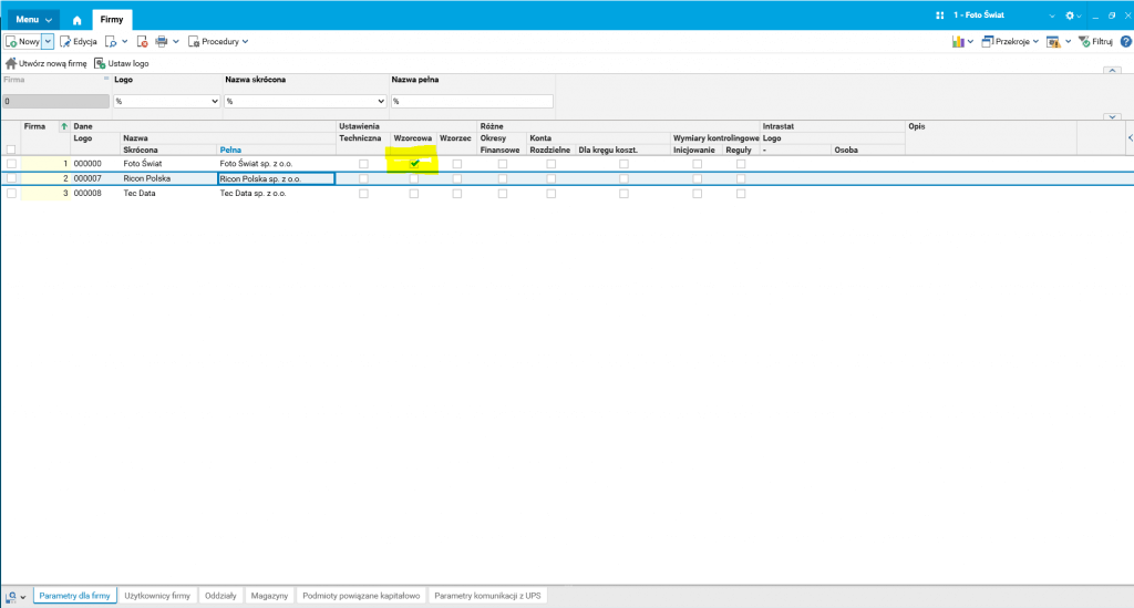 Rys. 4. Słownik Firmy, wskazanie firmy wzorcowej