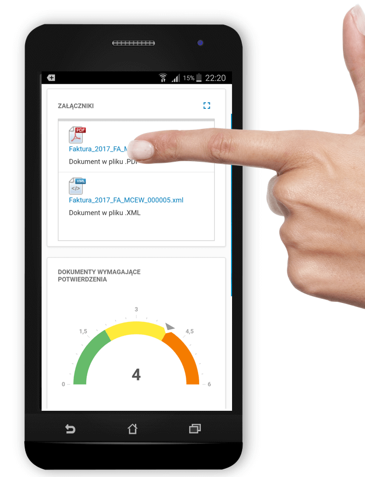 Wiadomość jest opatrzona linkiem, po kliknięciu którego odbiorca jest przekierowywany na mobilną stronę portalu. Na stronie można między innymi pobrać załącznik dokumentu, a nawet od razu go opłacić.