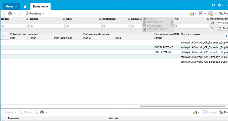 Status dostarczenia SMS-ów jest możliwy do sprawdzenia w systemie Softlab ERP w słowniku Dokumenty (menu e-Dokumenty), w polu Powiadomienia SMS;Status. Status Dostarczono oznacza, że wysyłka przynajmniej jednego SMS-a na numer jednego z kontaktów kontrahenta powiodła się.