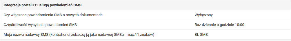 Rys. Fragment okna parametrów administracyjnych dotyczących SMS w portalu Businesslink