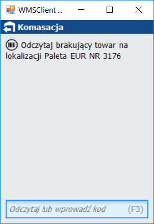 Po potwierdzeniu system wchodzi w tryb obsługi braków.