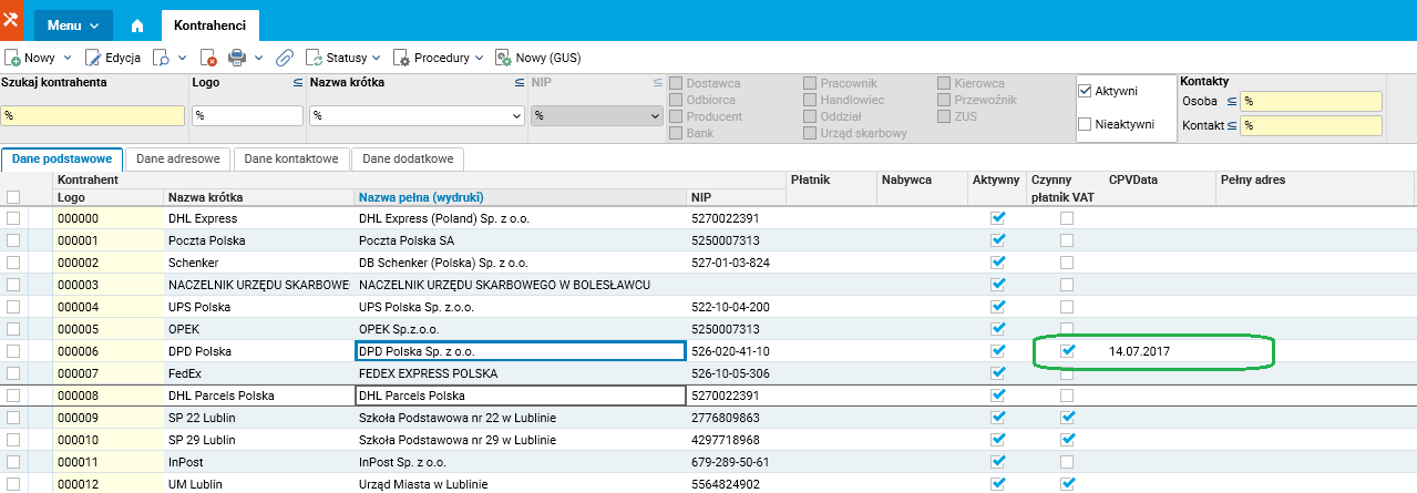 W Kartotece Kontrahentów systemu Asseco Softlab ERP została dodana procedura „Sprawdź status podatnika w VAT”, dzięki której można poznać status podatnika VAT bezpośrednio z poziomu aplikacji.