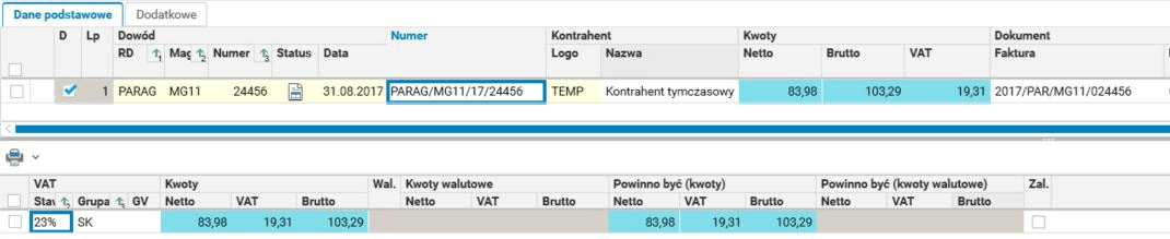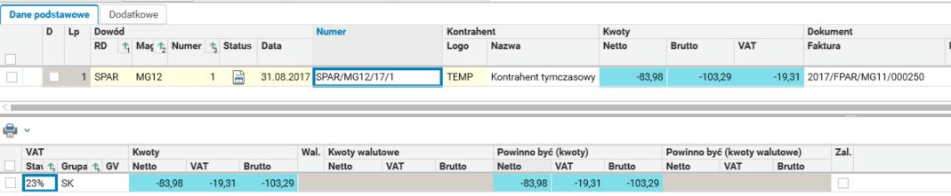 Po zaksięgowaniu faktury automatycznie generowany jest dokument wewnętrzny stornujący paragon, który wyksięgowuje podatek VAT ujęty na koncie pozabilansowym (standardowo R/222). Dokument ten ma na celu zmniejszenie (zapis na minus) wartości w rejestrze VAT ujętych na podstawie paragonu, aby nie zdublować wartości sprzedaży ujętej w ewidencji VAT. Dokument storna paragonu wystawiony jest na wartość faktury, a księgowany jest z datą wystawienia faktury.