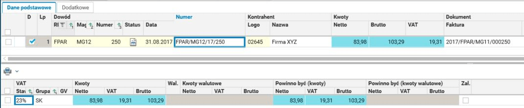 - Założyć rodzaj dowodu dla faktury do paragonu (np. FPAR) oraz dodać eksport do rejestru VAT.