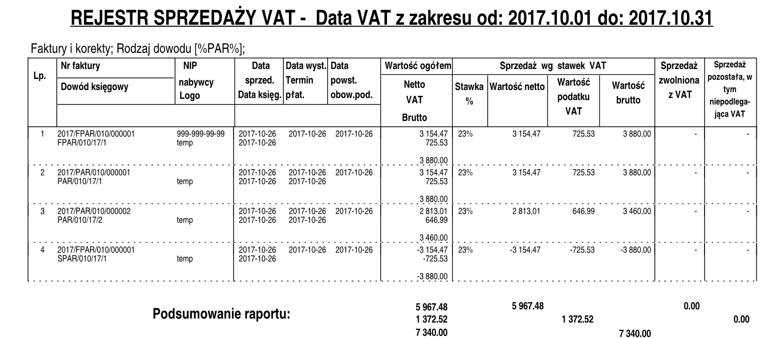 Rys.6. Wydruk rejestru sprzedaży VAT