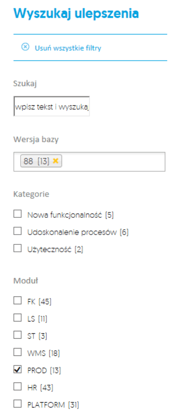 Rys. Filtry, które pozwalają wyszukać zmiany dotyczące systemu ERP w wersji 88