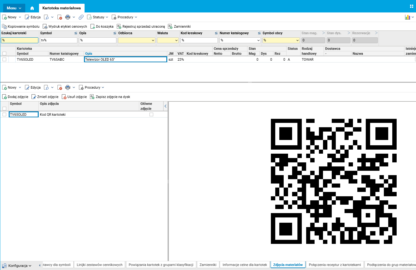 Rys. 2 Kartotek materiałowa, szczegół Zdjęcia materiałów, procedura Generuj kod QR (2D)