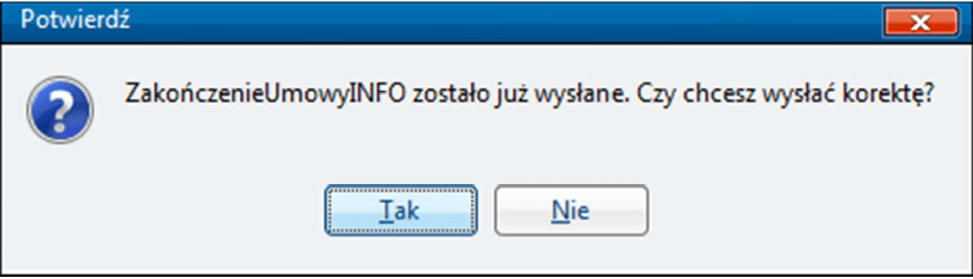 Rys. 3. Informacja o wysłaniu korekty – zwolnienie pracownika