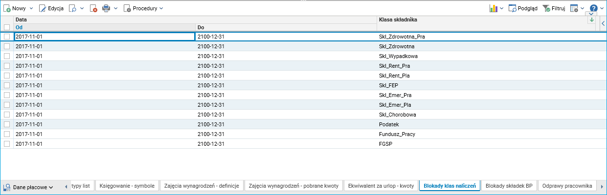 • wprowadzenie blokady klas naliczeń poprzez ich dopisanie z odpowiednią datą obowiązywania od.