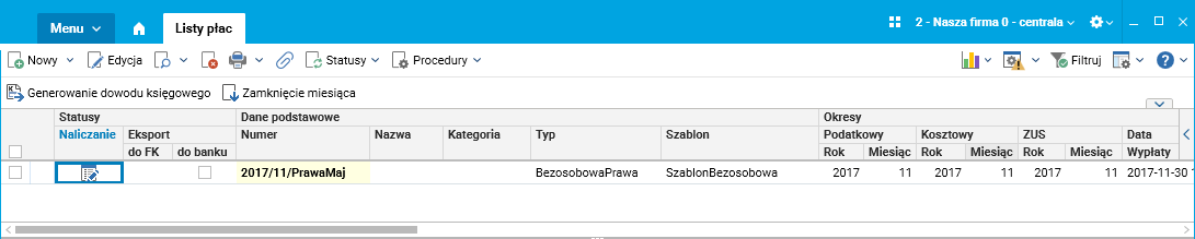 • stworzyć odpowiednią listę płacową typu BezosobowaPrawa,