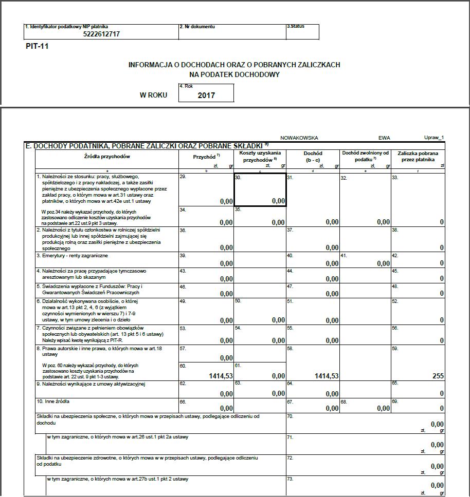 Rys. 22. Deklaracja PIT-11 dla osoby uprawnionej