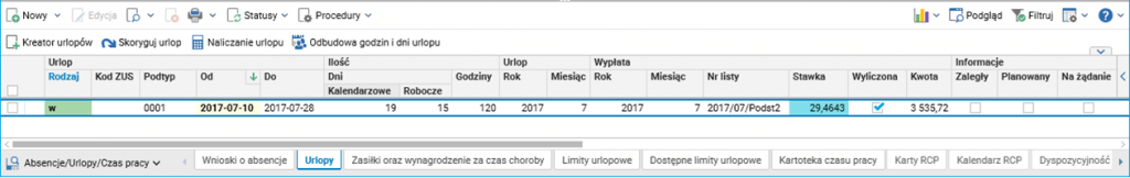 Rys. 3. Urlopy pracownika w słowniku Pracownicy – umowy(etaty)