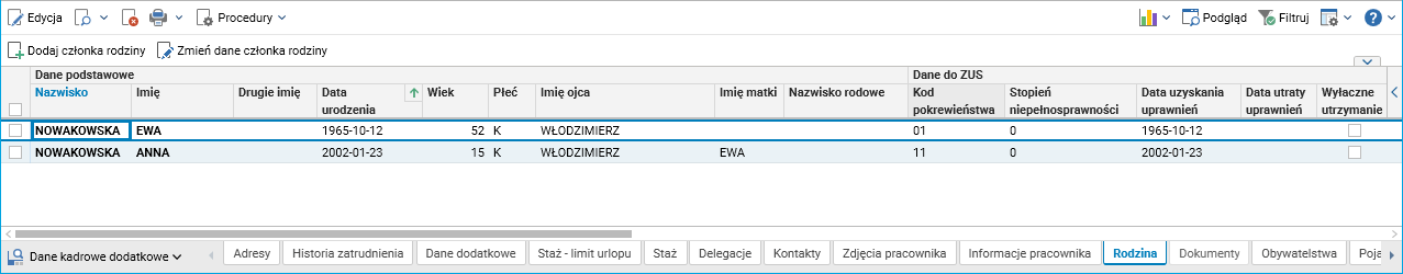 Rys. 5. Szczegół Rodzina w słowniku Pracownicy – umowy(etaty)