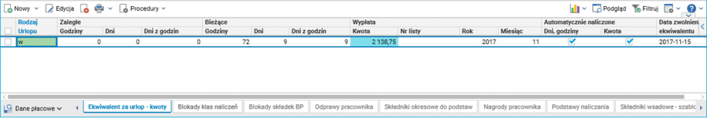 • Wyliczony został należny ekwiwalent za niewykorzystany urlop.