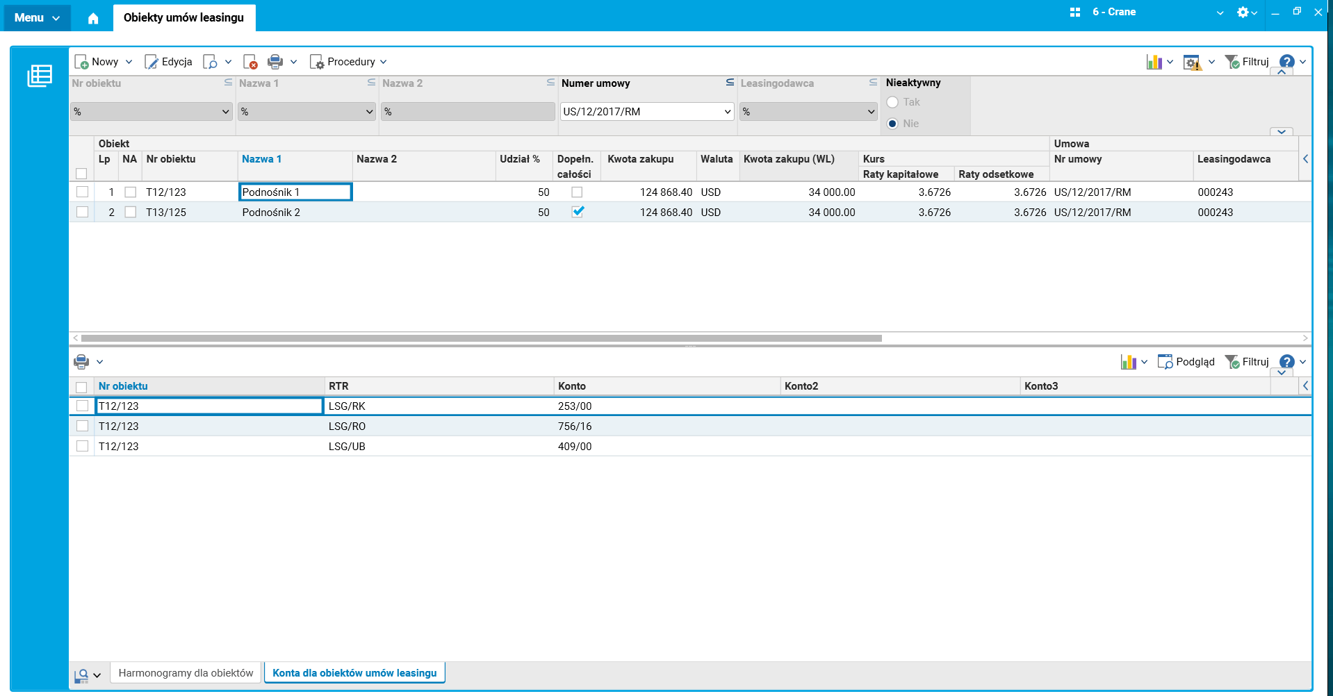 Rys. 2. Szczegół Obiekty umów leasingu