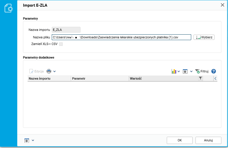 - import zwolnień lekarskich z pliku *.csv (bezpośrednio lub z weryfikacją użytkownika),