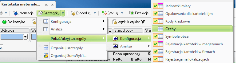 Pokazywanie i ukrywanie szczegółów za pomocą pola wyboru nie zwija menu, zaś wyżej opisany sposób otwarcia wyłączonego szczegółu wymaga wykonania znacznie mniejszej liczby czynności. Kliknięcie w pozycję odpowiadającą wyłączonemu szczegółowi powoduje jego włączenie oraz automatyczne otwarcie.