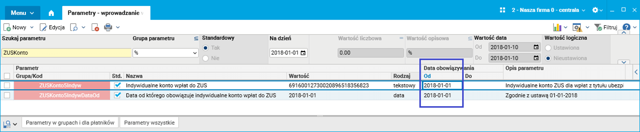Dodano nowe parametry z grupy ZUS: