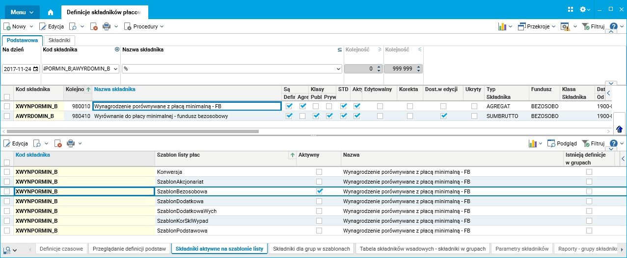 Rys. Definicja składników płacowych AWYRDOMIN_B oraz XWYNPORMIN_B