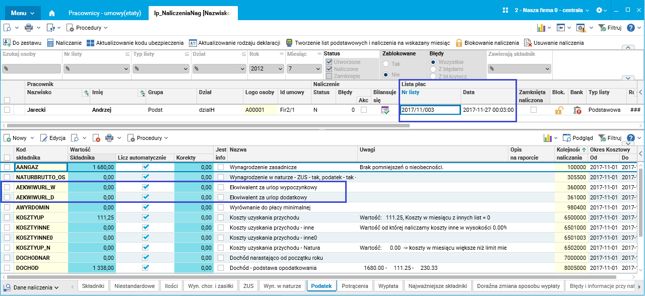 W tym celu dodano parametr EkwiwalentDoDatyWyplaty określający, czy na liście płac naliczać tylko ekwiwalenty z datą przed datą wypłaty listy.