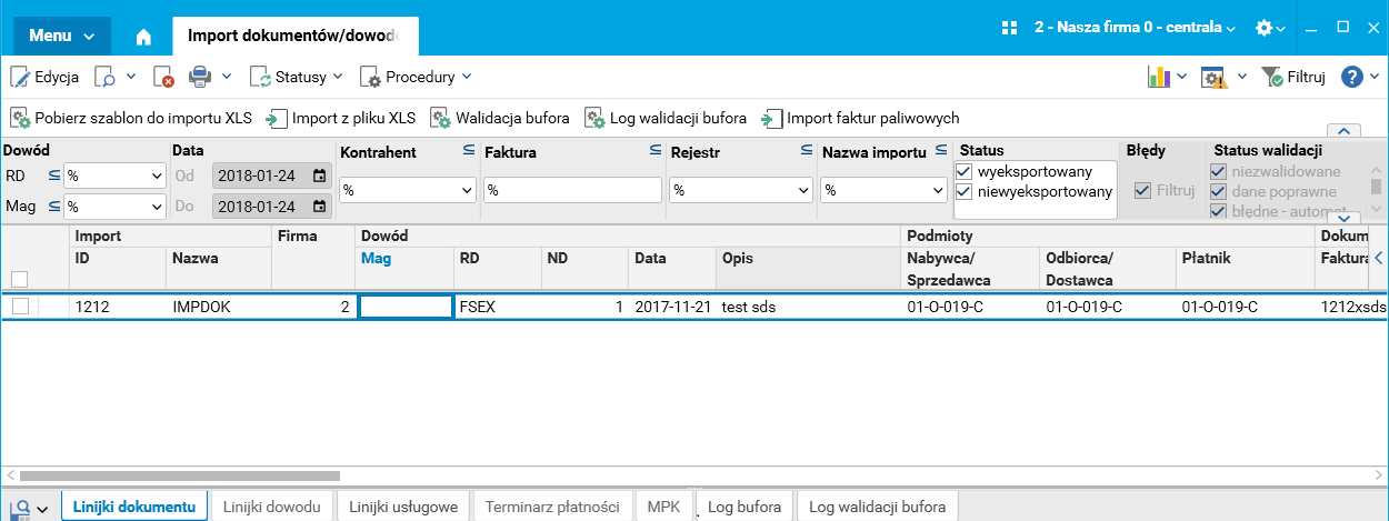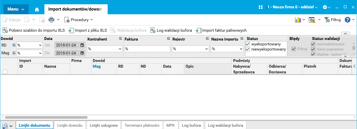 Zaimportowane dokumenty widoczne są tylko w kontekście właściwej firmy.