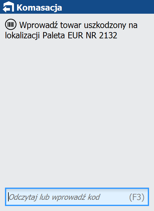 Po wybraniu opcji wprowadzania uszkodzeń należy podać kod towaru, który jest uszkodzony.