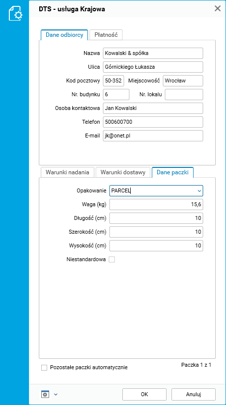 Rys. Tworzenie paczek kurierskich – DTS