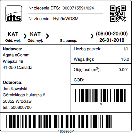 Rys. Etykieta na paczkę kurierską DTS