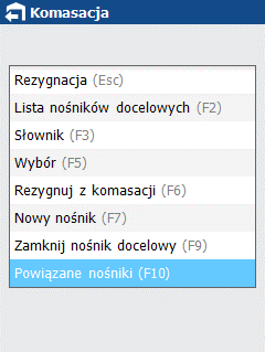Po odczytaniu nośnika źródłowego w menu opcji (F1) dostępna jest opcja Powiązane nośniki, umożliwiająca wyświetlenie informacji o nośnikach powiązanych z tym samym zamówieniem lub zleceniem wydania co odczytany nośnik źródłowy.