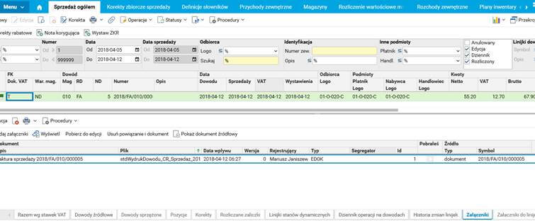 Rys. Wydruk faktury podpięty jako załącznik