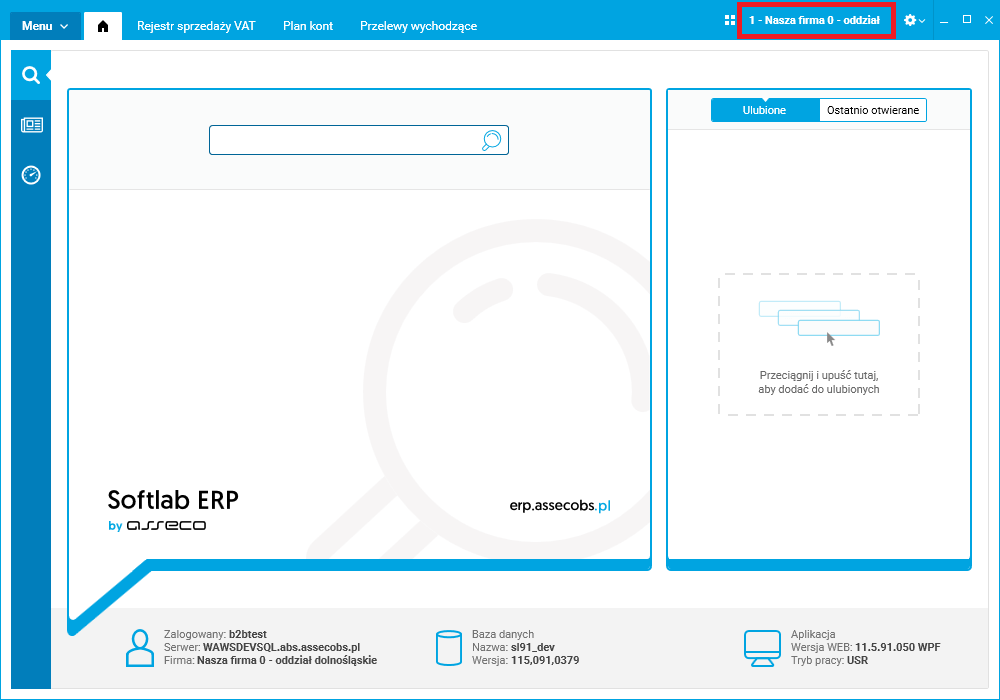 Rys. Nazwa firmy w oknie Softlab ERP