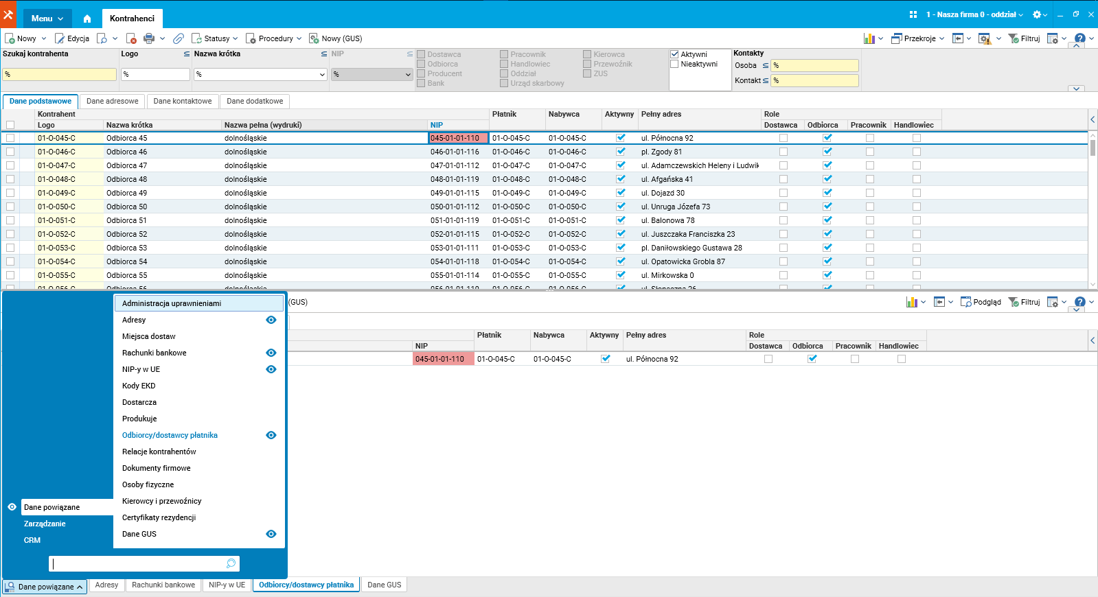 • widoczni byli tylko kontrahenci z rolą Odbiorca,