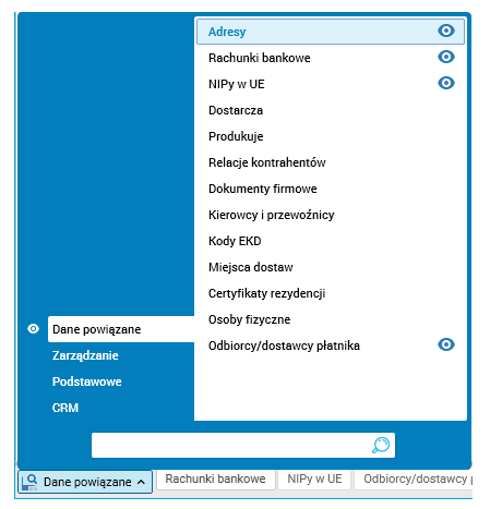 Użytkownik chce mieć zawsze widoczny szczegół Adresy podczas przeglądania danych kontrahentów.