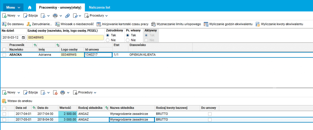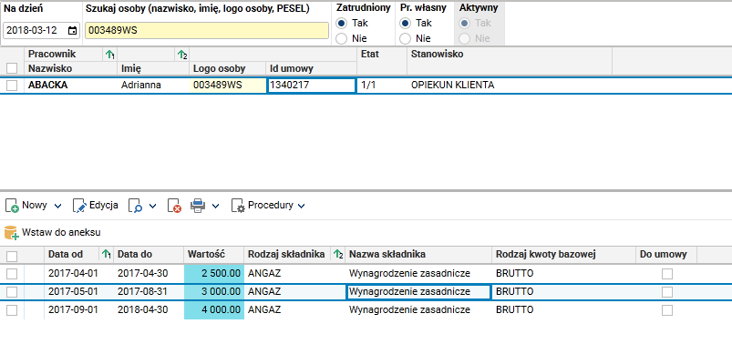 Po wykonaniu się procedury zakładka ze stawkami pracownika wygląda następująco: