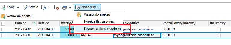 Z menu Procedury uruchamiamy procedurę Kreator zmiany składnika