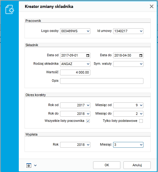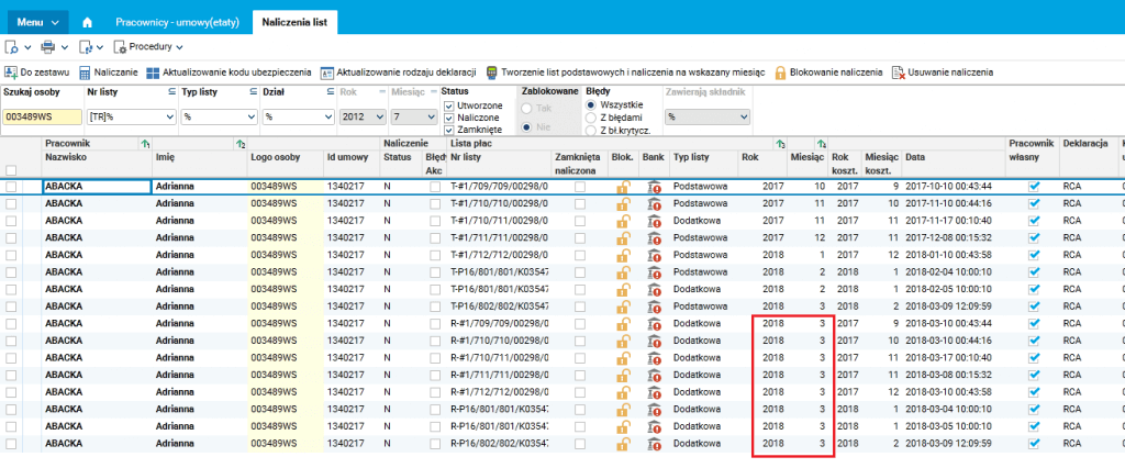 W aplikacji dodana została procedura, która obsługuje podwyżkę z działaniem wstecznym. Aby procedura zadziałała poprawnie wszystkie listy z korygowanego okresu, na których jest ten pracownik, muszą być zamknięte.