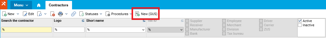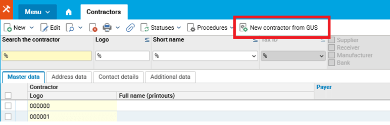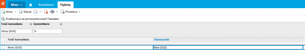Rysunek 7 Domyślne tłumaczenie procedury „Nowy kontrahent (GUS)”