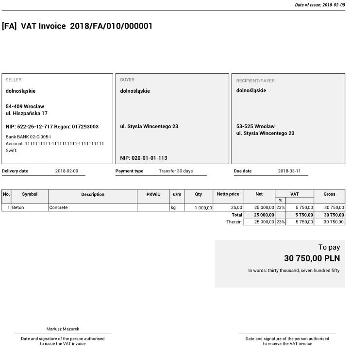 • Możliwość generowania wydruków w różnych językach w oparciu o ten sam wzorzec.