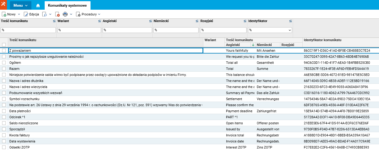 Innym aspektem, z punktu widzenia tłumaczeń systemu Softlab ERP by Asseco, są tłumaczenia komunikatów.